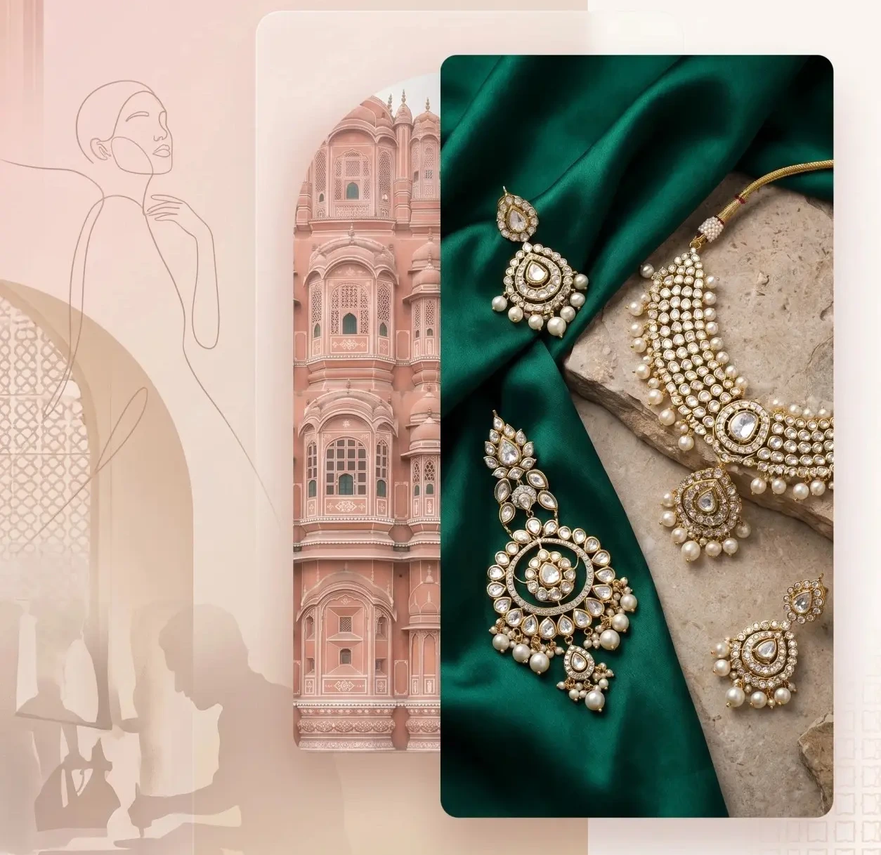Our mission is simple — to bring the finest handcrafted jewellery from the workshops of Jaipur to your doorstep, with complete transparency and a promise that lasts a lifetime. From everyday 925 Silver to bridal Polki sets, we craft for every version of you, for every moment that matters.