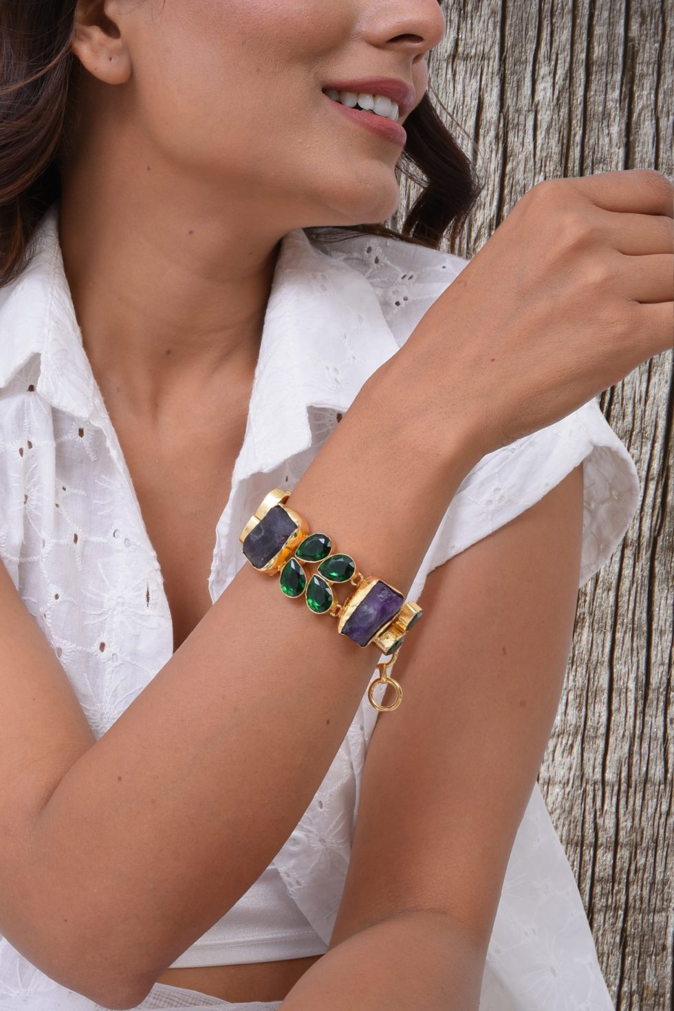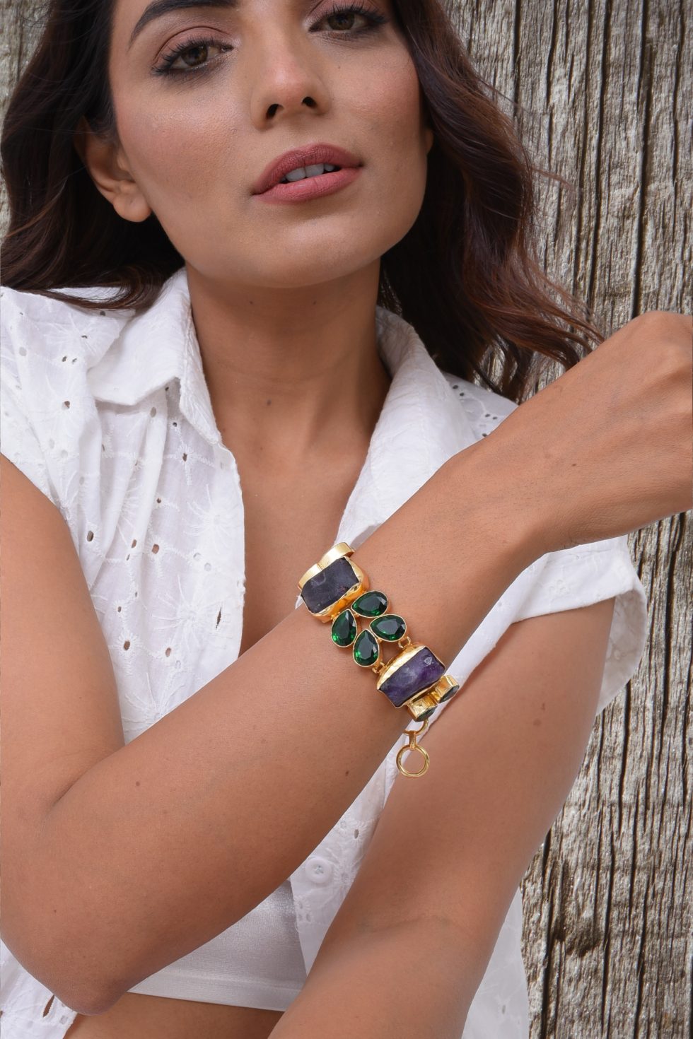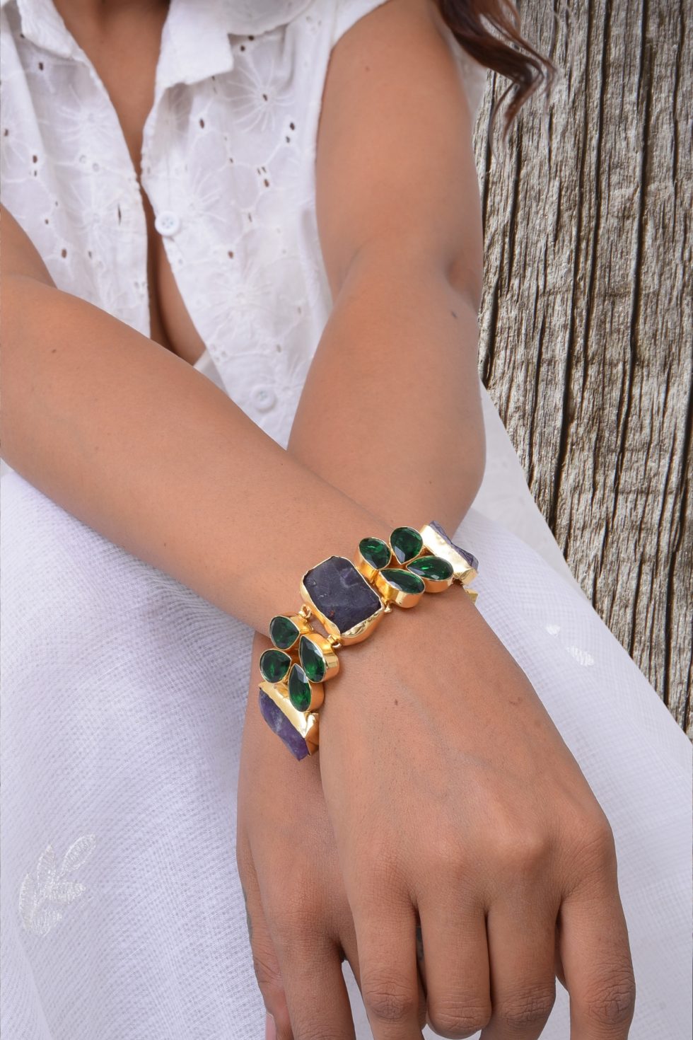 Silver alloy Gold plated Bracelet with semiprecious stones.