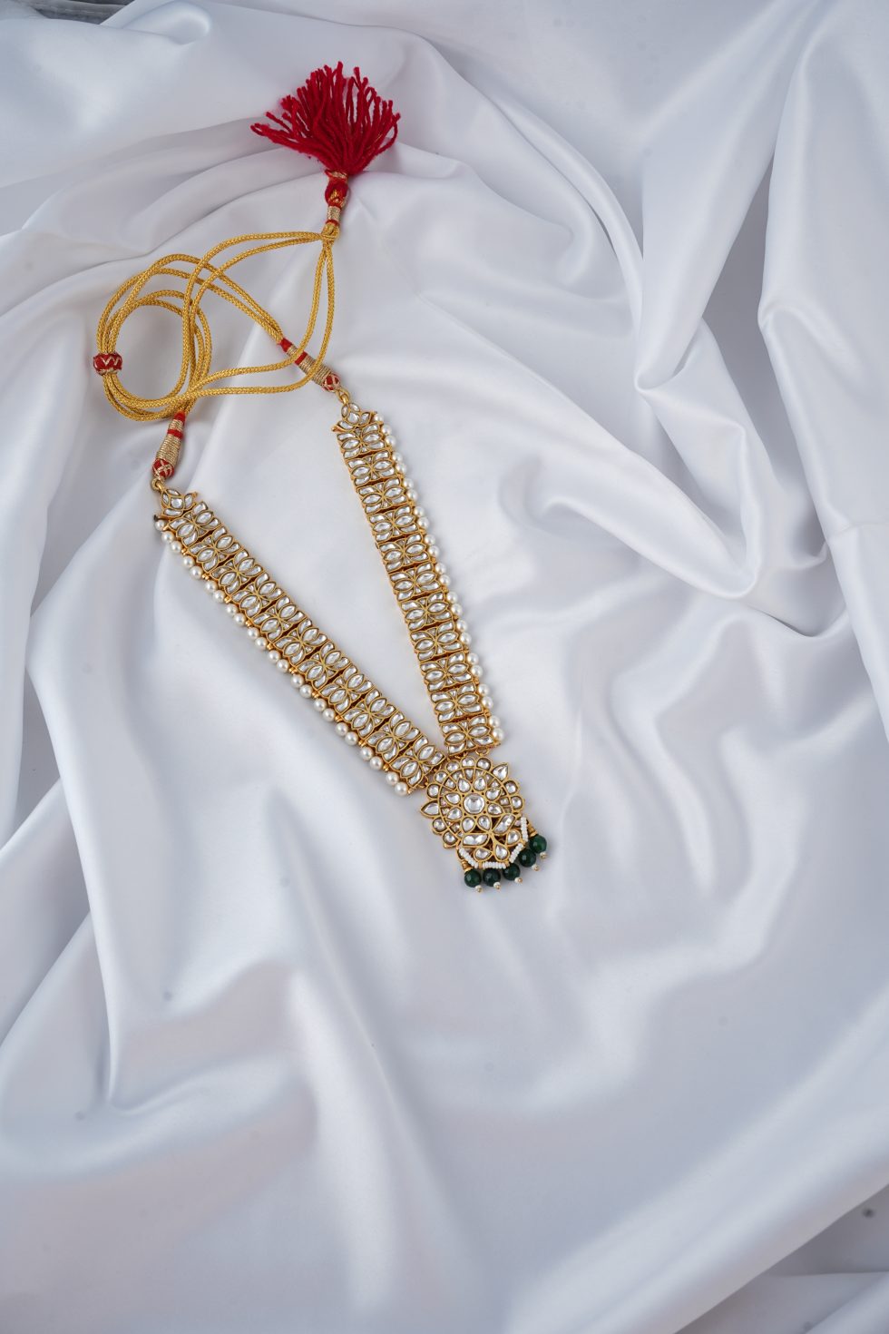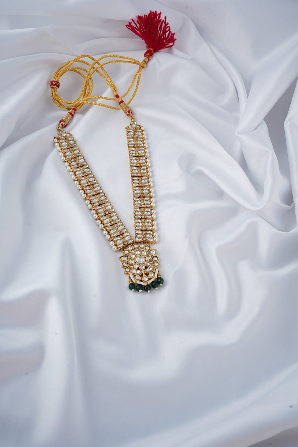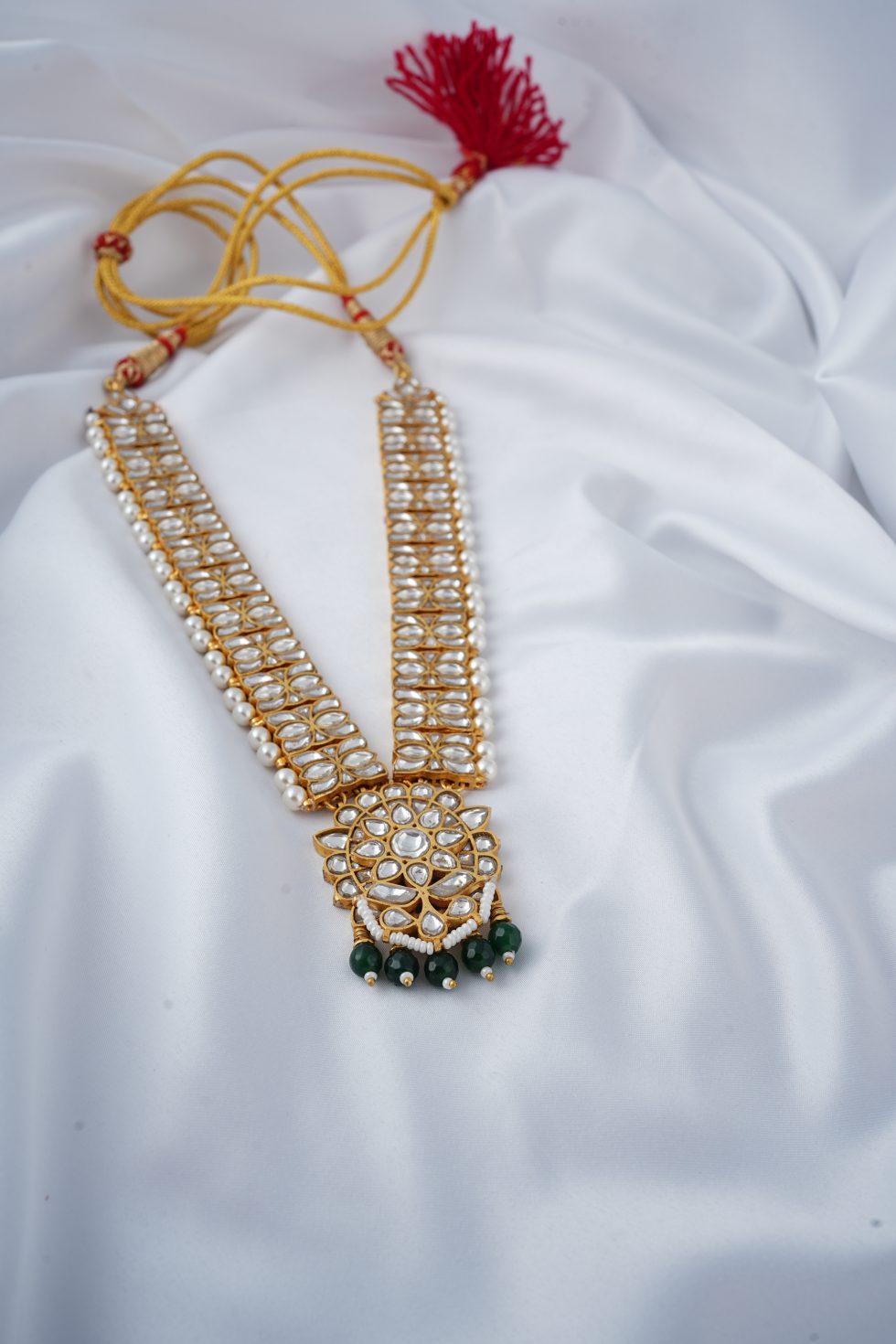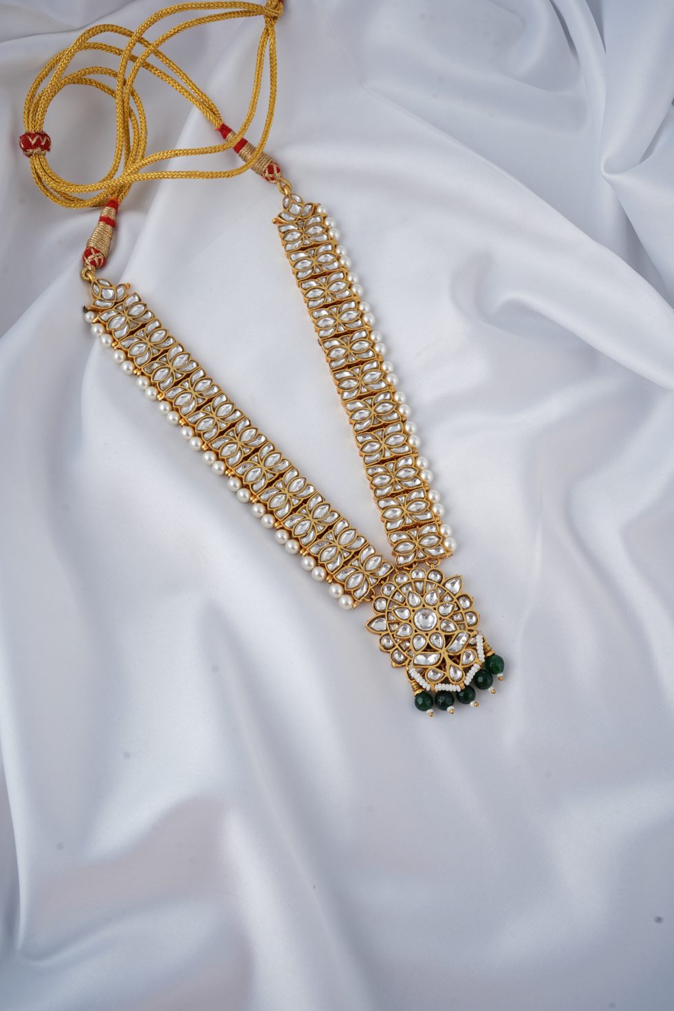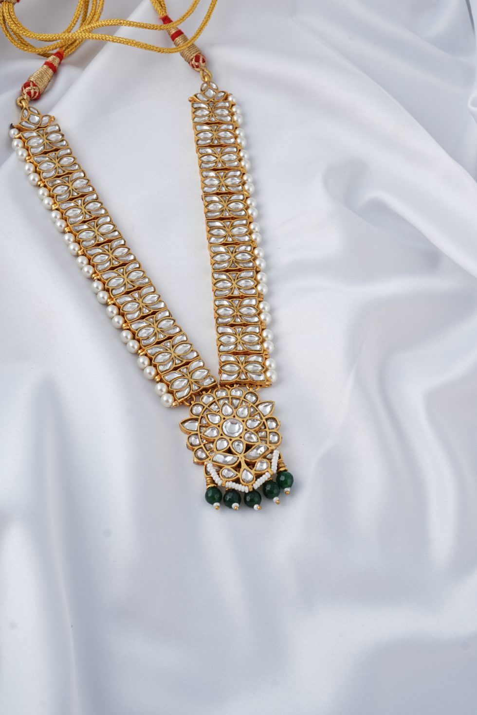Handmade Gold plated Silver alloy necklace with faux pearls and polki stones.