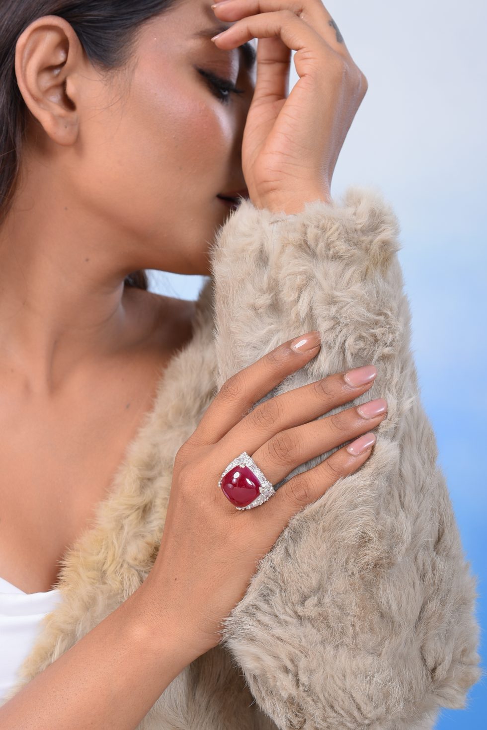 Handmade 92.5 silver, stone polkis Adjustable Ring.