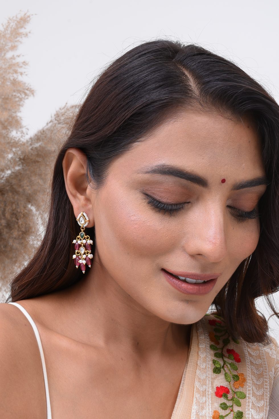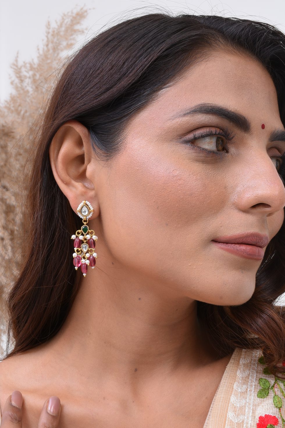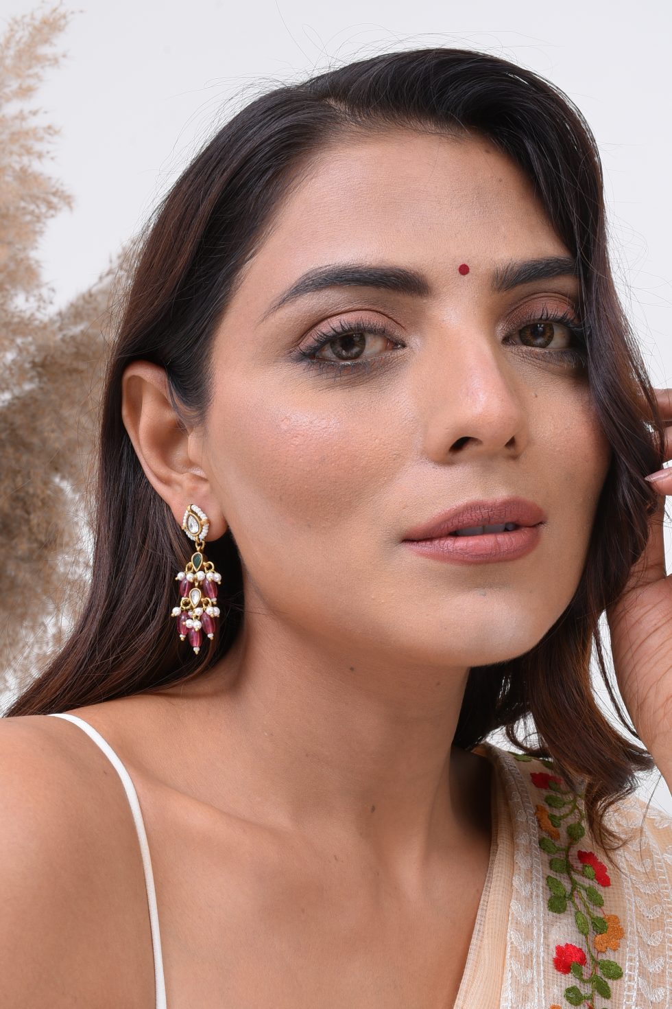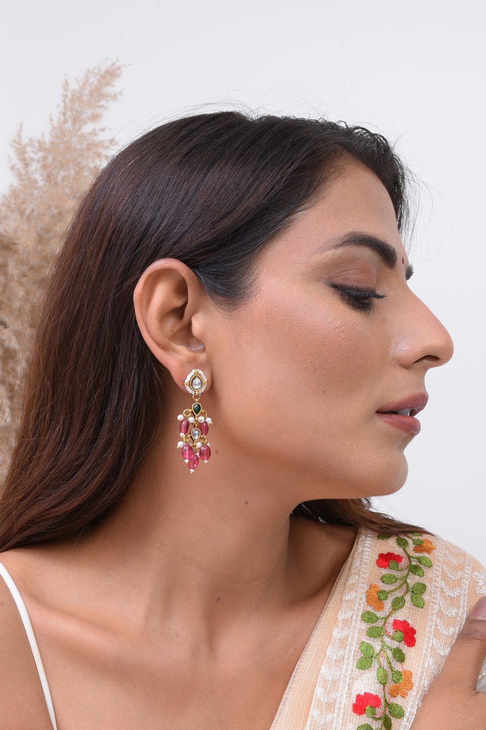 Silver alloy Gold plated Earring with Faux pearls and stones.