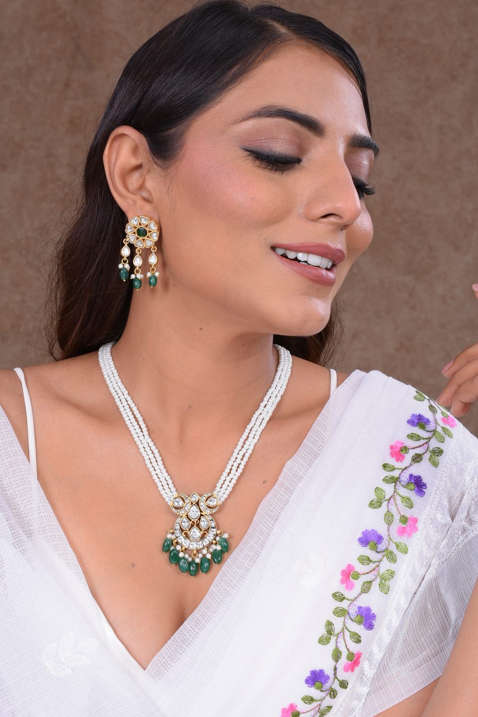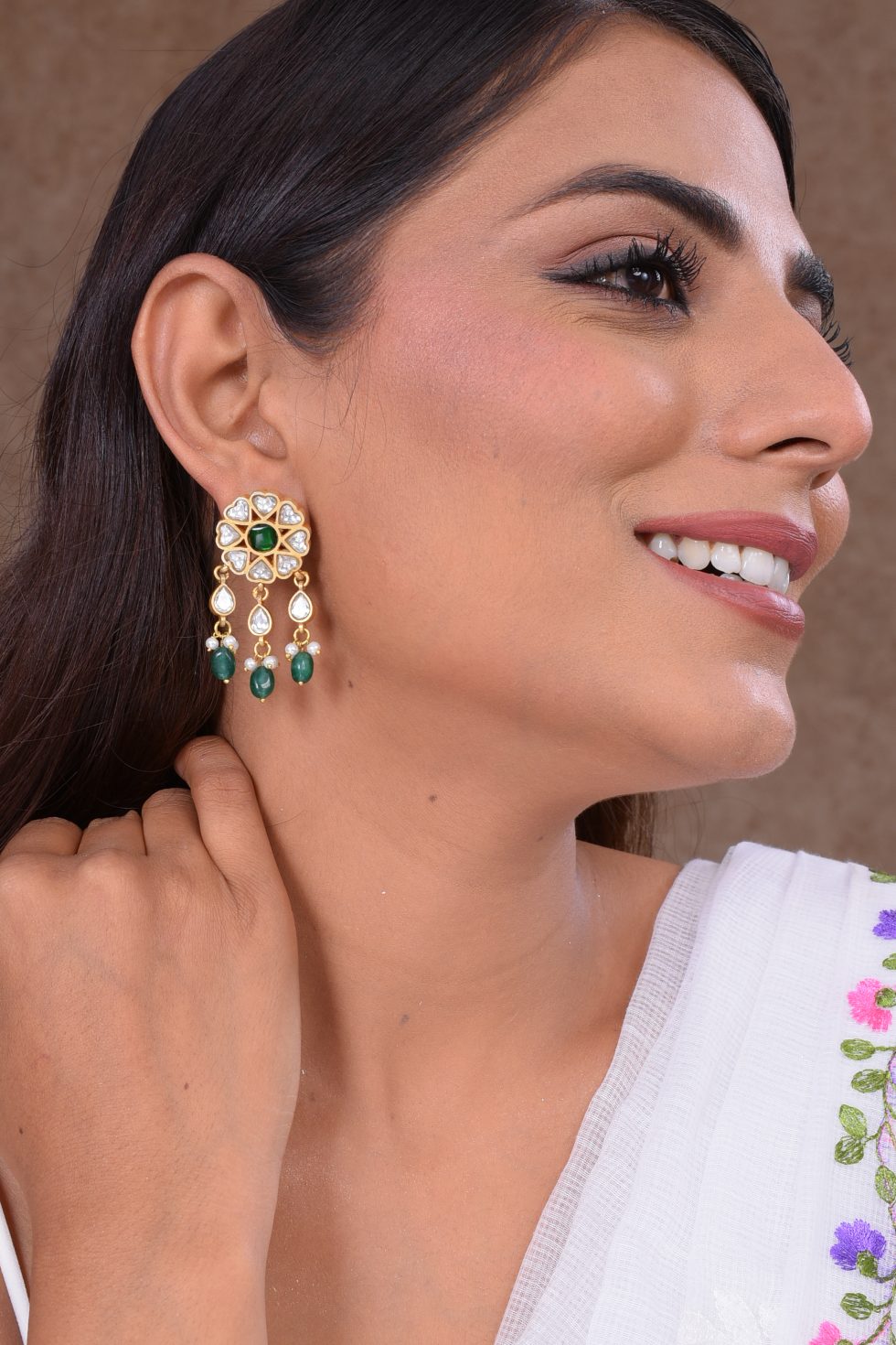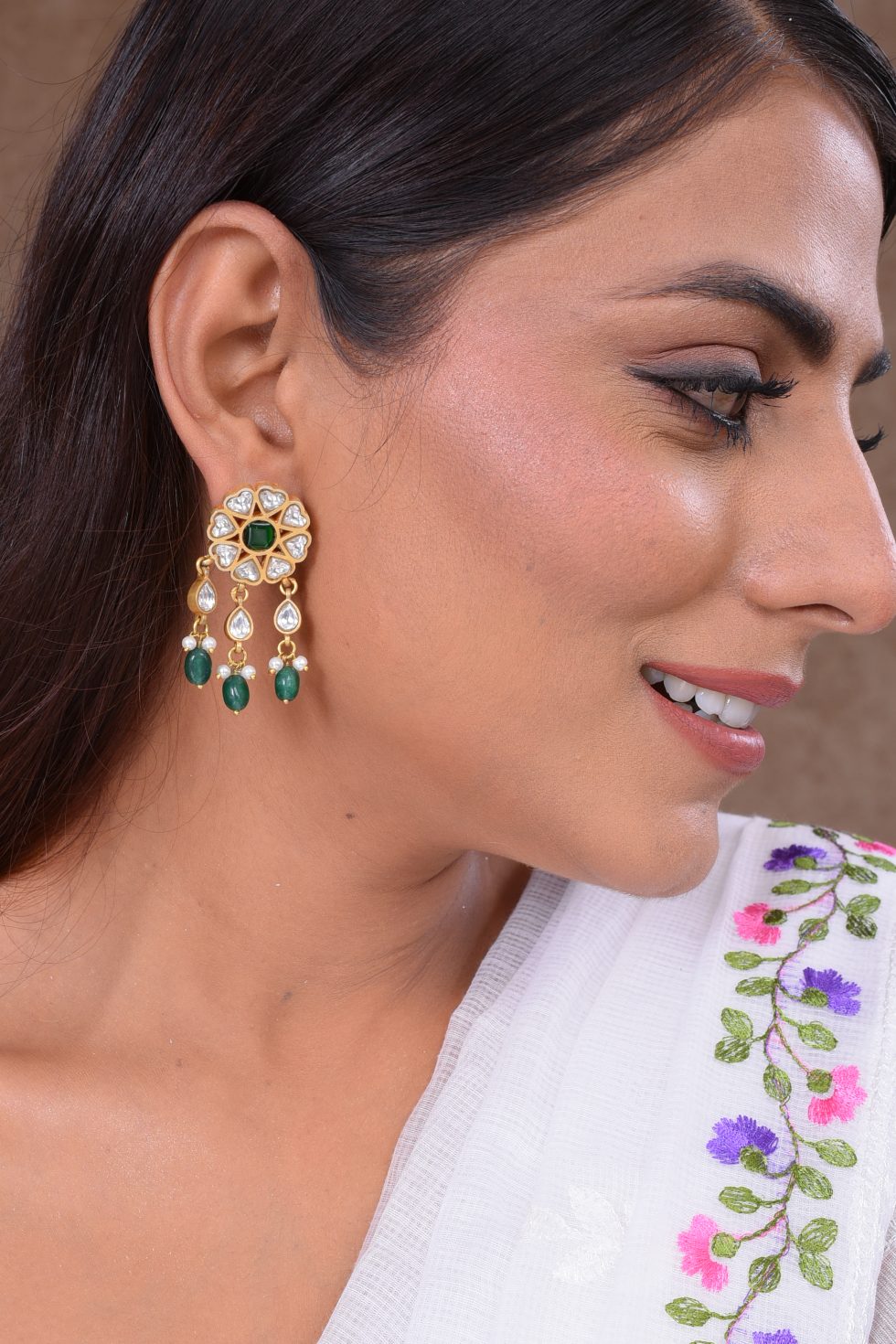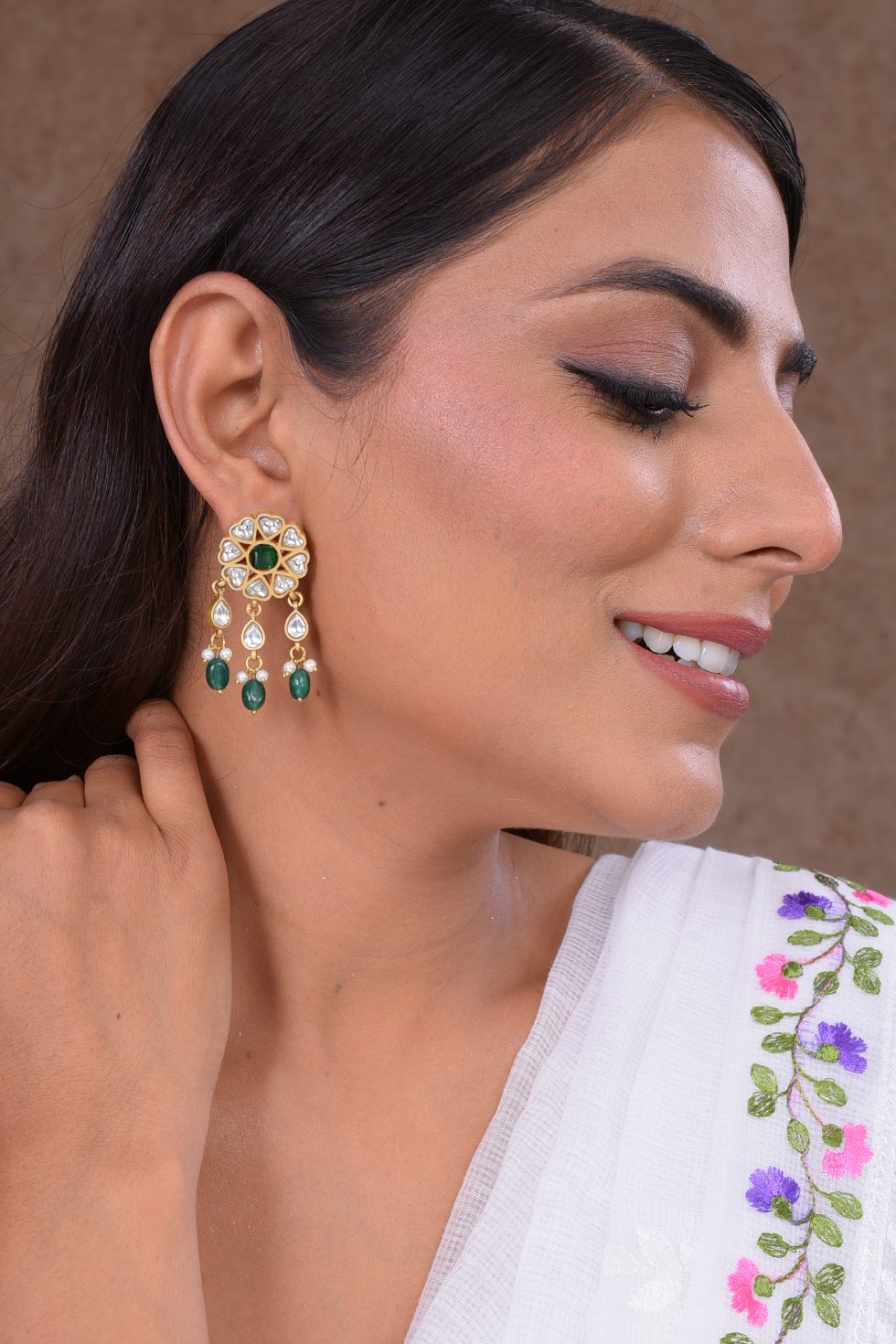 Handmade Silver alloy Gold plated Earring with Faux pearls and stones.