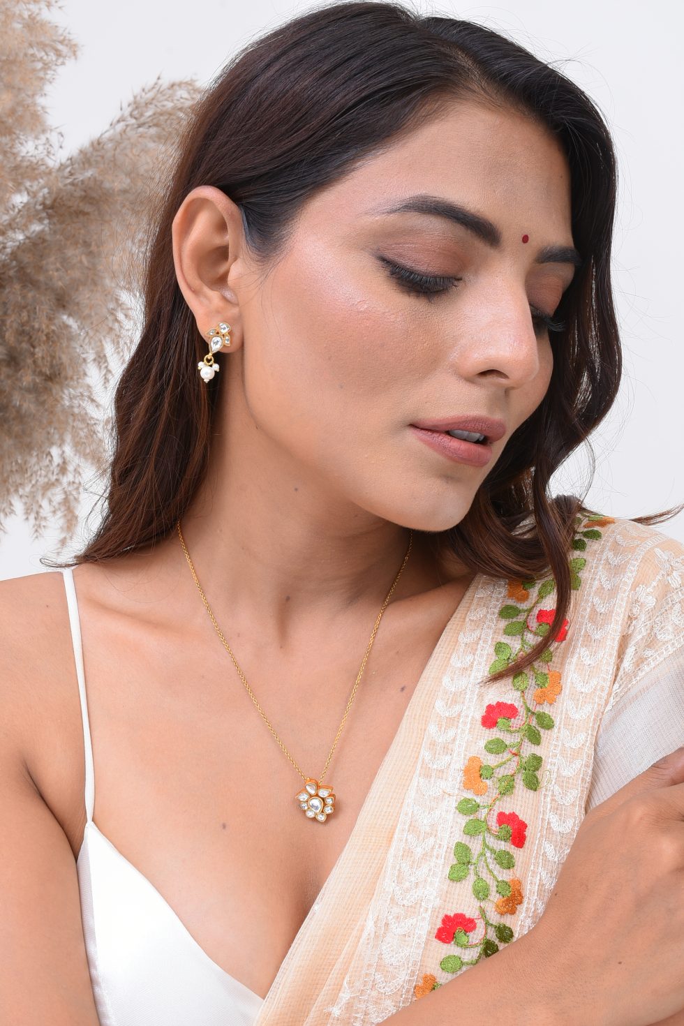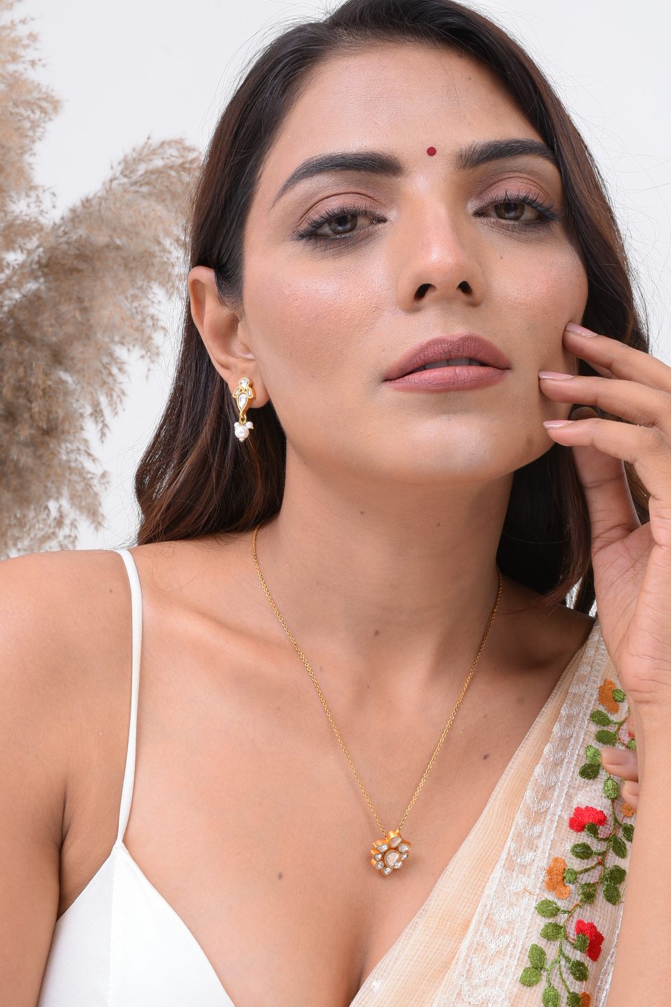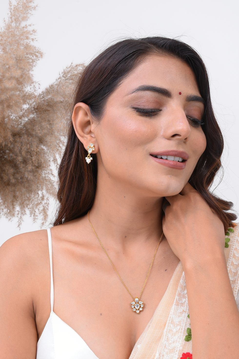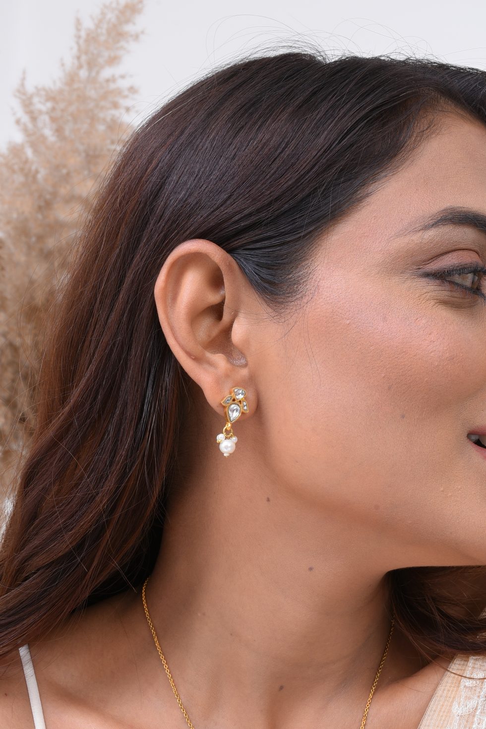 Handmade Silver alloy Gold plated Earring with Faux pearls and stones.