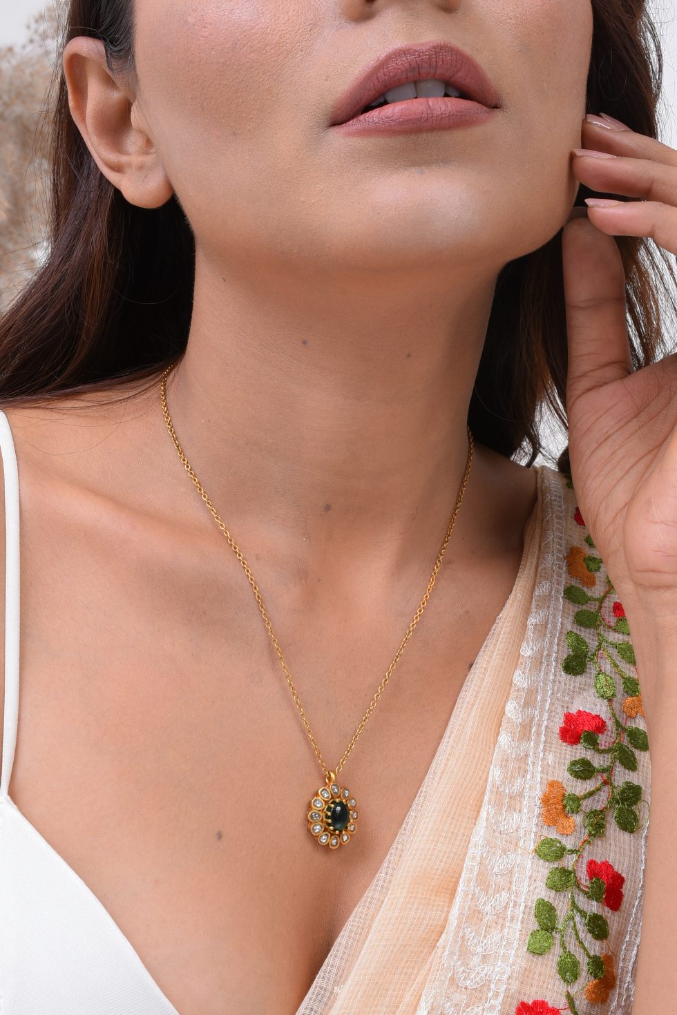 Handmade Silver alloy pendent necklace with color stone and polkis.