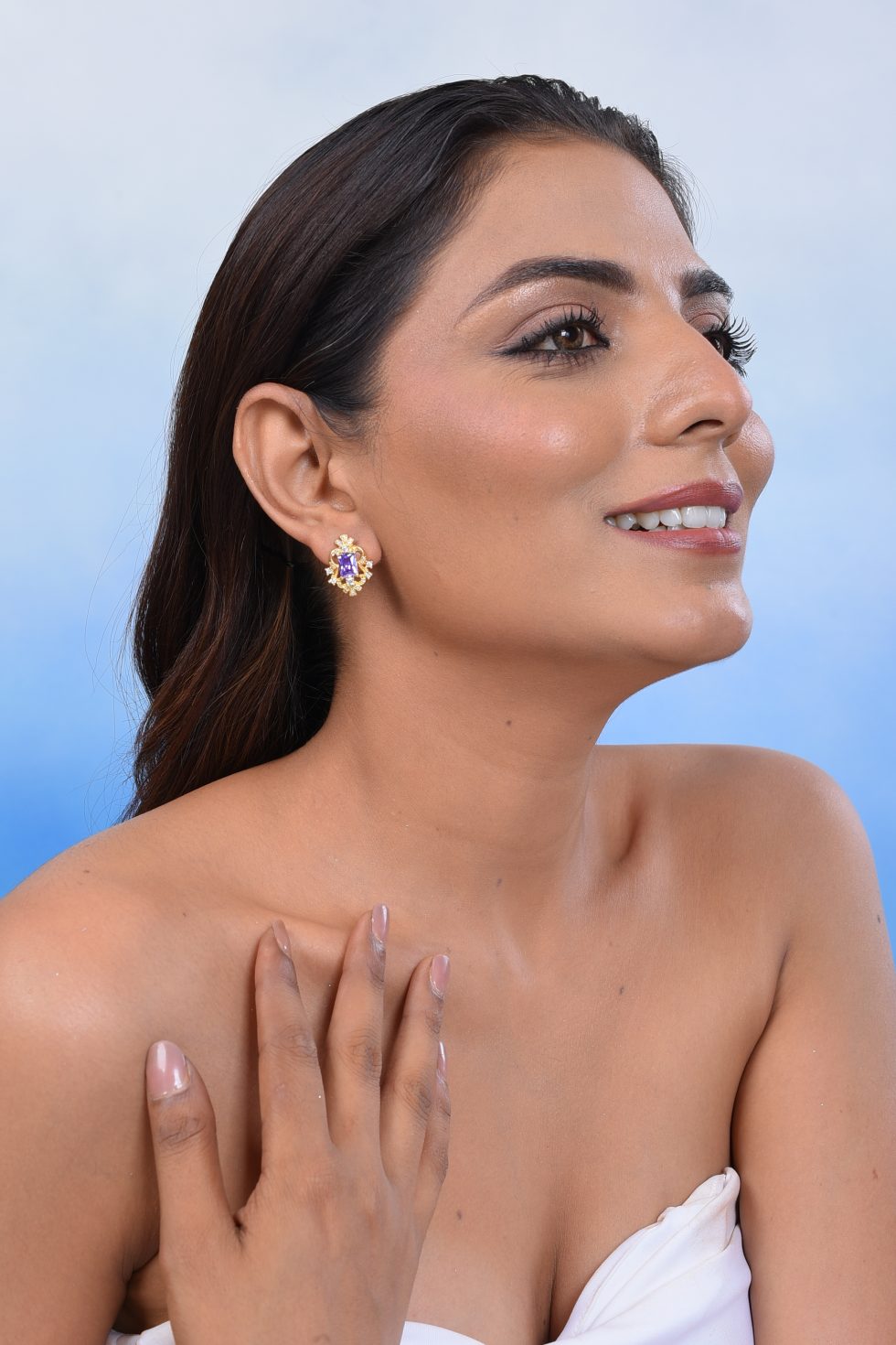 Handmade Silver 925 Gold plated Earring with Faux pearls and stones.
