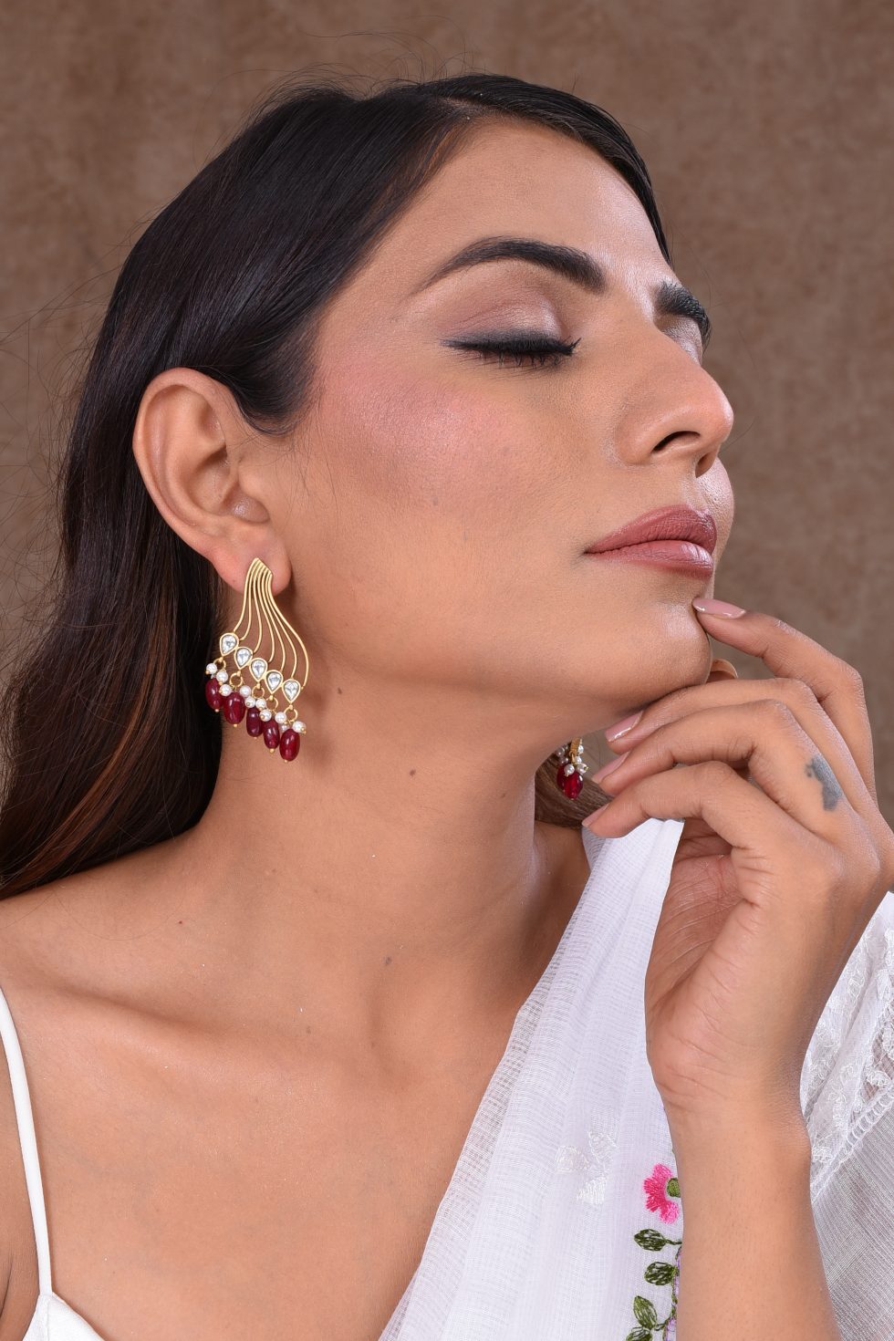 Handmade Silver alloy Gold plated Earring with Faux pearls and stones.