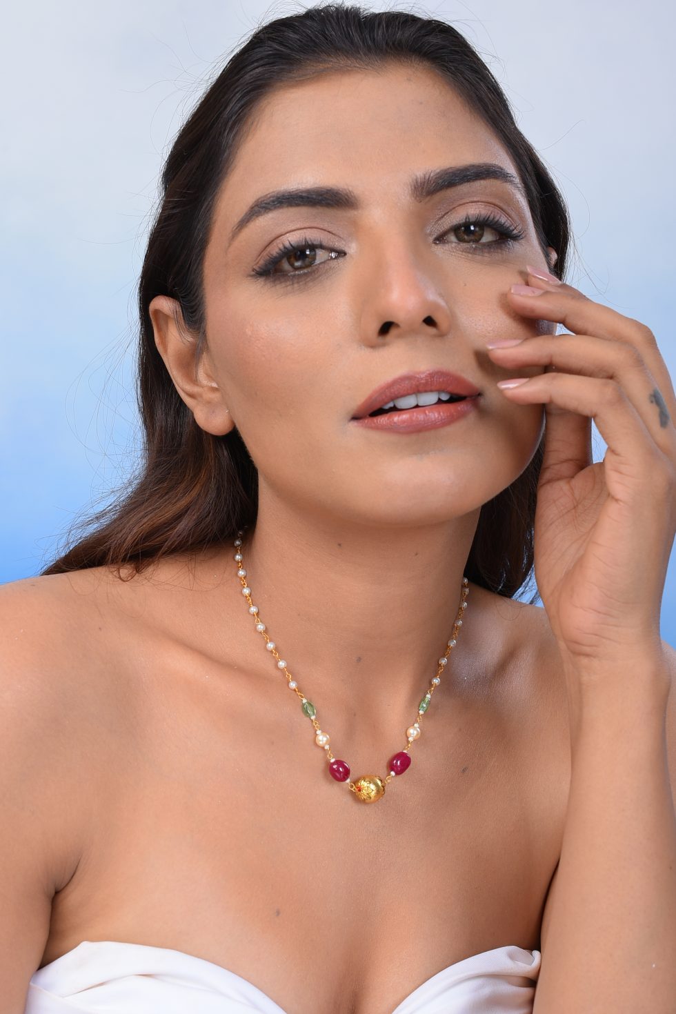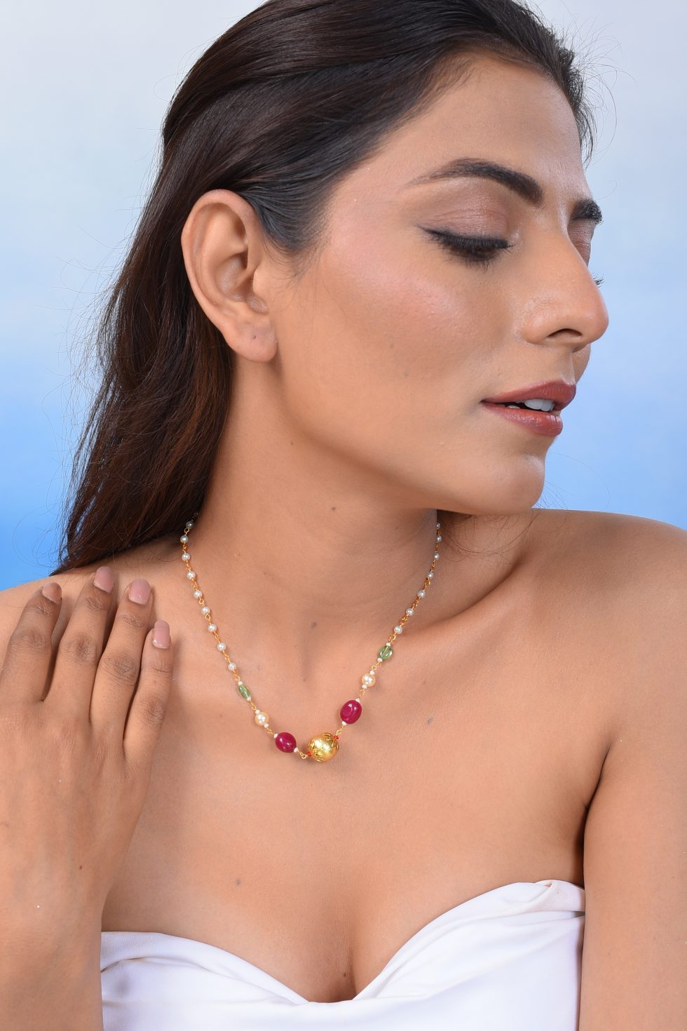 Handmade Gold plated silver alloy necklace with stone polki and faux pearls.